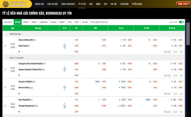 - Theo dõi tỷ lệ kèo bóng đá từ nhiều nhà cái uy tín, giúp anh em dễ dàng so sánh và tham khảo trước mỗi trận.